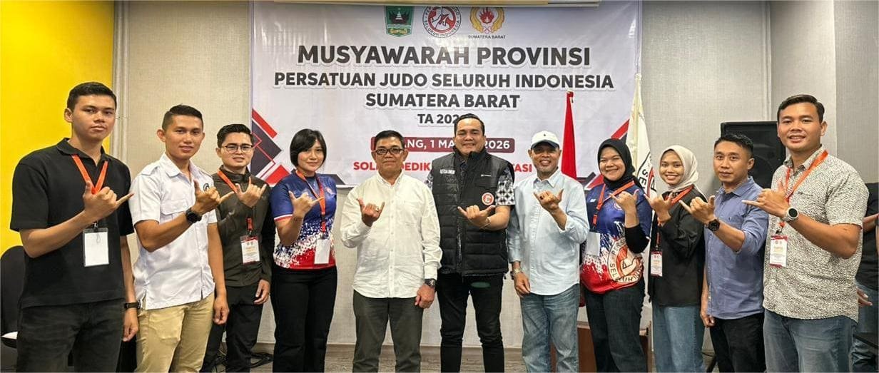 SWARNASUMBAR.COM — Ari Irpendi resmi terpilih secara aklamasi sebagai Ketua Persatuan Judo Seluruh Indonesia Sumatera Barat dalam Musyawarah Provinsi yang digelar Minggu, 1 Maret 2025, pukul 09.00 WIB, di ibis Hotel Padang.