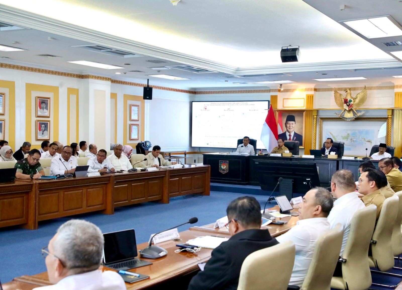 Rapat koordinasi tersebut turut dihadiri Menteri Dalam Negeri Tito Karnavian, Menko PMK Pratikno, Kepala BPS Amalia Adininggar Widyasanti, Kepala BNPB Suharyanto, serta pejabat terkait lainnya.