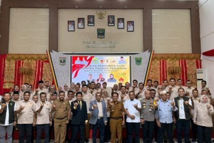 Bupati Padang Pariaman John Kenedy Aziz menghadiri pelantikan pengurus KONI Padang Pariaman di Parik Malintang, Senin (16/3/2026). SWARNASUMBAR.COM – Bupati Padang Pariaman John Kenedy Aziz (JKA) mene...