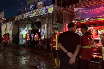 Petugas Dinas Pemadam Kebakaran Kota Padang memadamkan api yang melanda Minimarket Raifan Mart di Jalan Gajah Mada, Senin pagi (30/3/2026). SWARNASUMBAR.COM – Kebakaran melanda Minimarket Raifan Mart ...