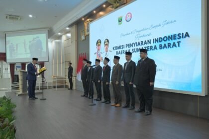 Gubernur Sumbar Mahyeldi Ansharullah melantik tujuh Komisioner KPID Sumbar periode 2026–2029 di Auditorium Gubernuran, Senin (16/3/2026). SWARNASUMBAR.COM – Gubernur Sumatera Barat (Sumbar), Mahyeldi ...