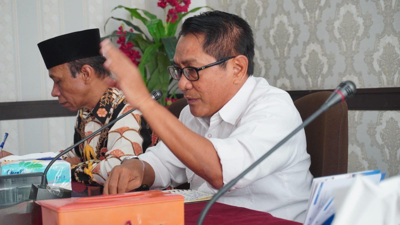 Bupati Padang Pariaman John Kenedy Azis menyampaikan keterangan terkait penolakan izin tambang andesit PT DBA di Nagari Kasang, Kecamatan Batang Anai.
