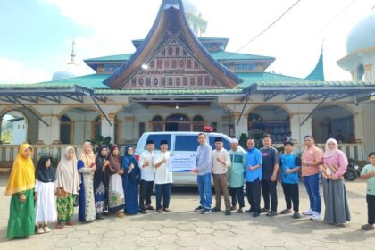 Pemimpin Cabang BRI BO Solok Riandi Rinaldi Tabrani menyerahkan bantuan ambulans BRI Peduli kepada Ketua Masjid Raya Singkarak Bukhari, MA di Masjid Raya Singkarak, Rabu (12/3/2026). SWARNASUMBAR.COM&...