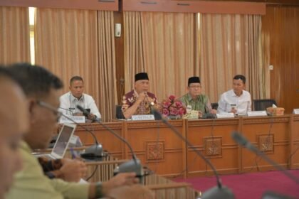 Gubernur Sumbar Mahyeldi Ansharullah memimpin rapat koordinasi pengembangan BRT di Aula Istana Bung Hatta, Bukittinggi, Jumat (27/2/2026). BUKITTINGGI — Pemerintah Provinsi Sumatera Barat menyiapkan s...